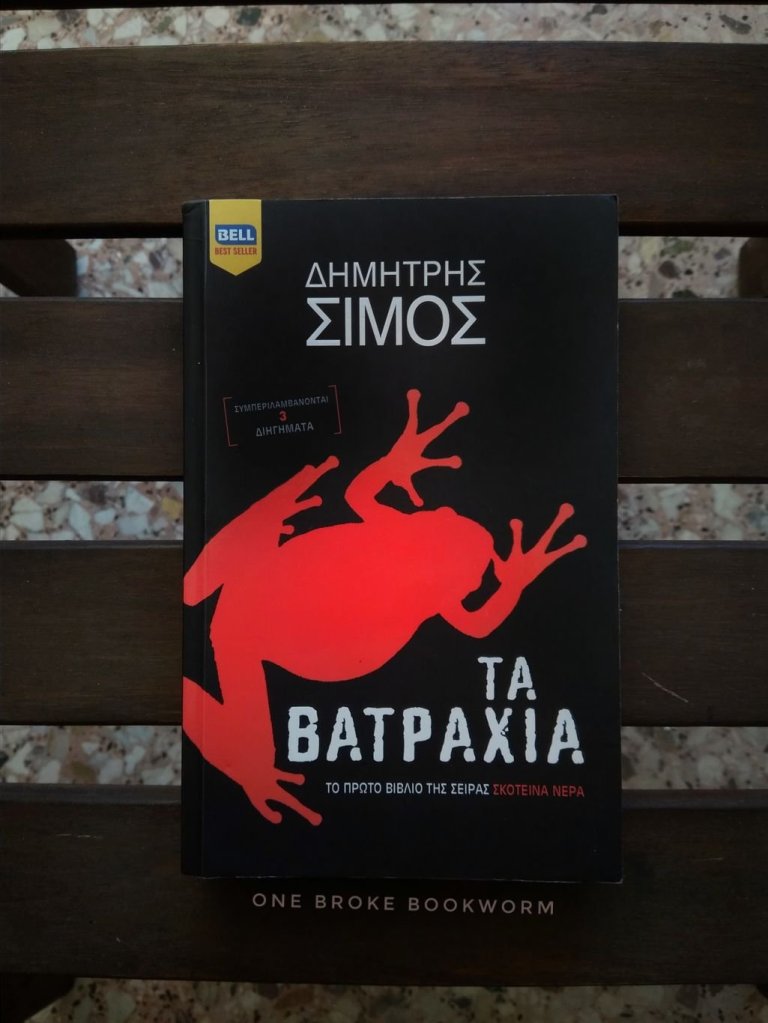 Συνεχίζουμε με το βιβλίο «Τα Βατράχια» του Δημήτρη Σίμου. Αποτελεί το πρώτο βιβλίο της σειράς «Σκοτεινά Νερά», με το δεύτερο να είναι «Τυφλά Ψάρια» και το τρίτο, το οποίο θα κυκλοφορήσει τον Ιούνιο, είναι «Τοξικά Μάτια». Έχω ακούσει αρκετά καλά λόγια, έτσι δεν μπορούσα να μην το διαβάσω σε αυτόν τον μαραθώνιο.