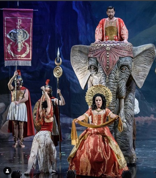 Picture 4. Charlotte (Lara Martins) sings «Think of me» while Piangi (John Ellis) is on an elephant
